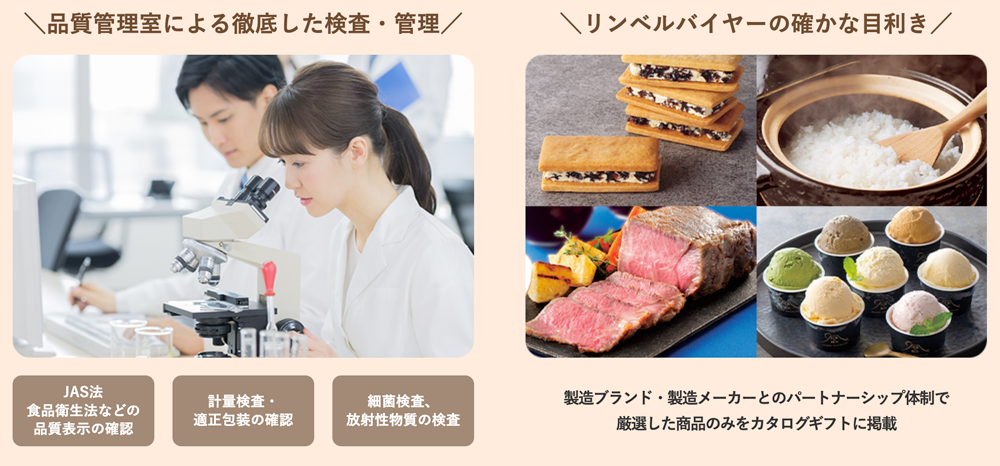 また、リンベルバイヤーの⽬利きで、厳選した商品のみをカタログギフトに掲載しているため、商品の品質も安心です。