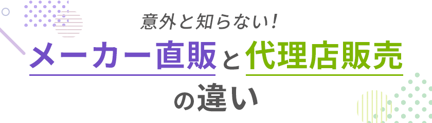代理店販売の場合は複数のメーカー商品を同時に比較することができるなどのメリットがありますが、代理店によって対応やサービス力、信頼度にバラつきがあります。