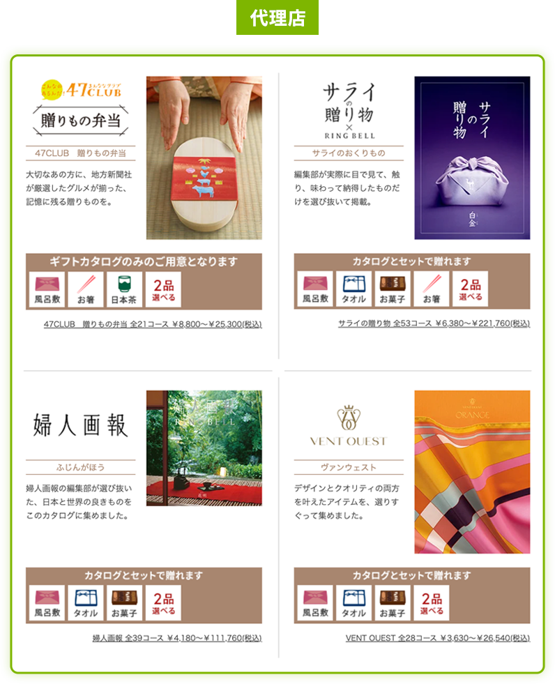 - 業界No.1の品揃えによるシーン別カタログギフトで欲しいが見つかる!